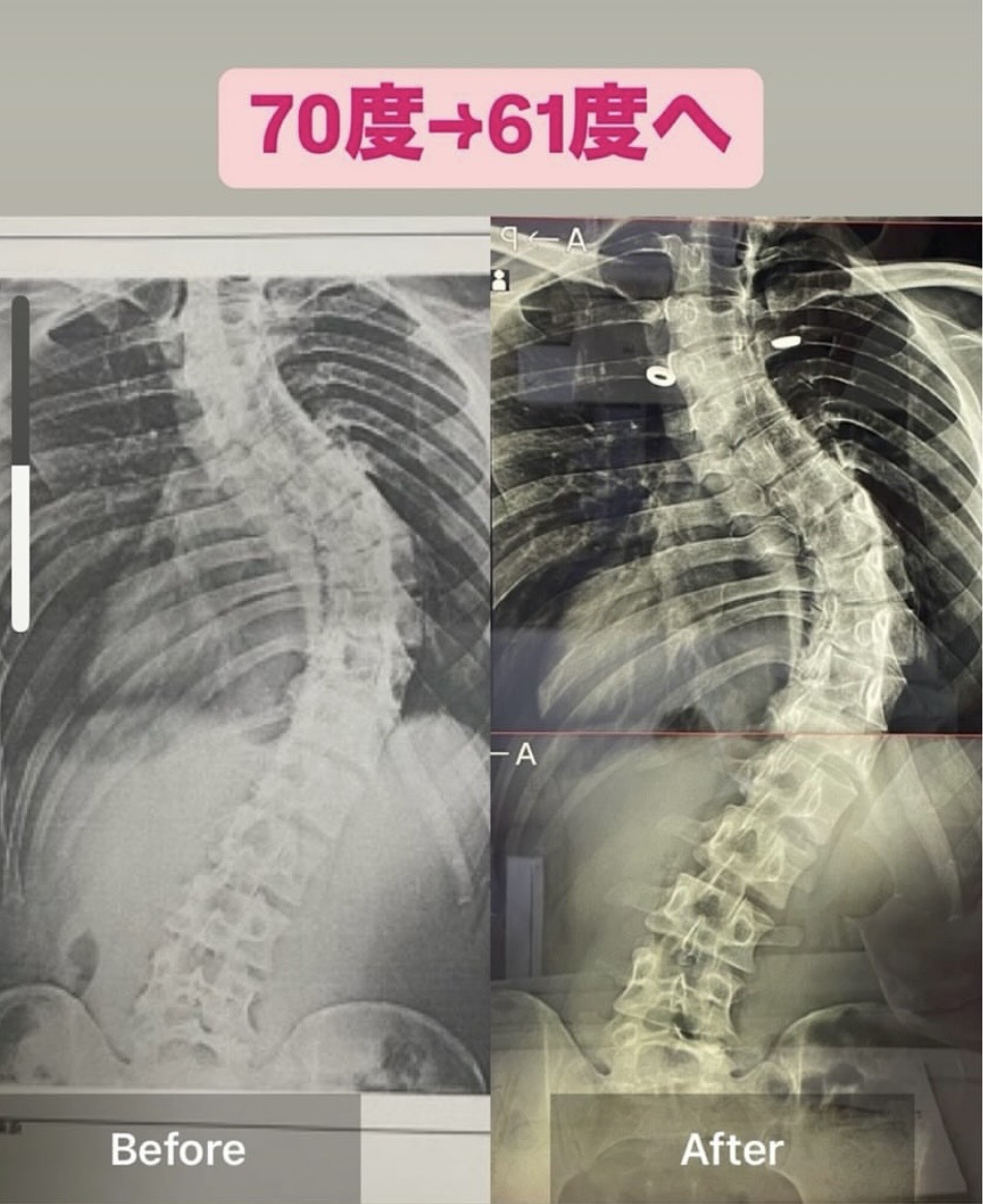 特発性側弯症のお客様によるレントゲンでのビフォーアフター3